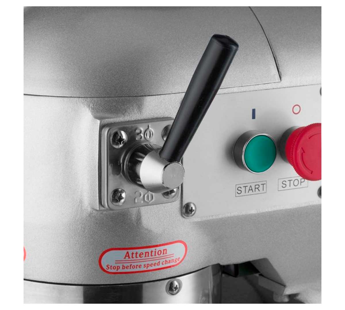 Mezcladora planetaria profesional disponible en 10 y 20 litros, con transmisión metálica reforzada y 3 velocidades mecánicas hasta 408 rpm. Sistema de elevación de cuba con protección de seguridad. Diseñada para panadería, pastelería y producción profesional media e intensiva.