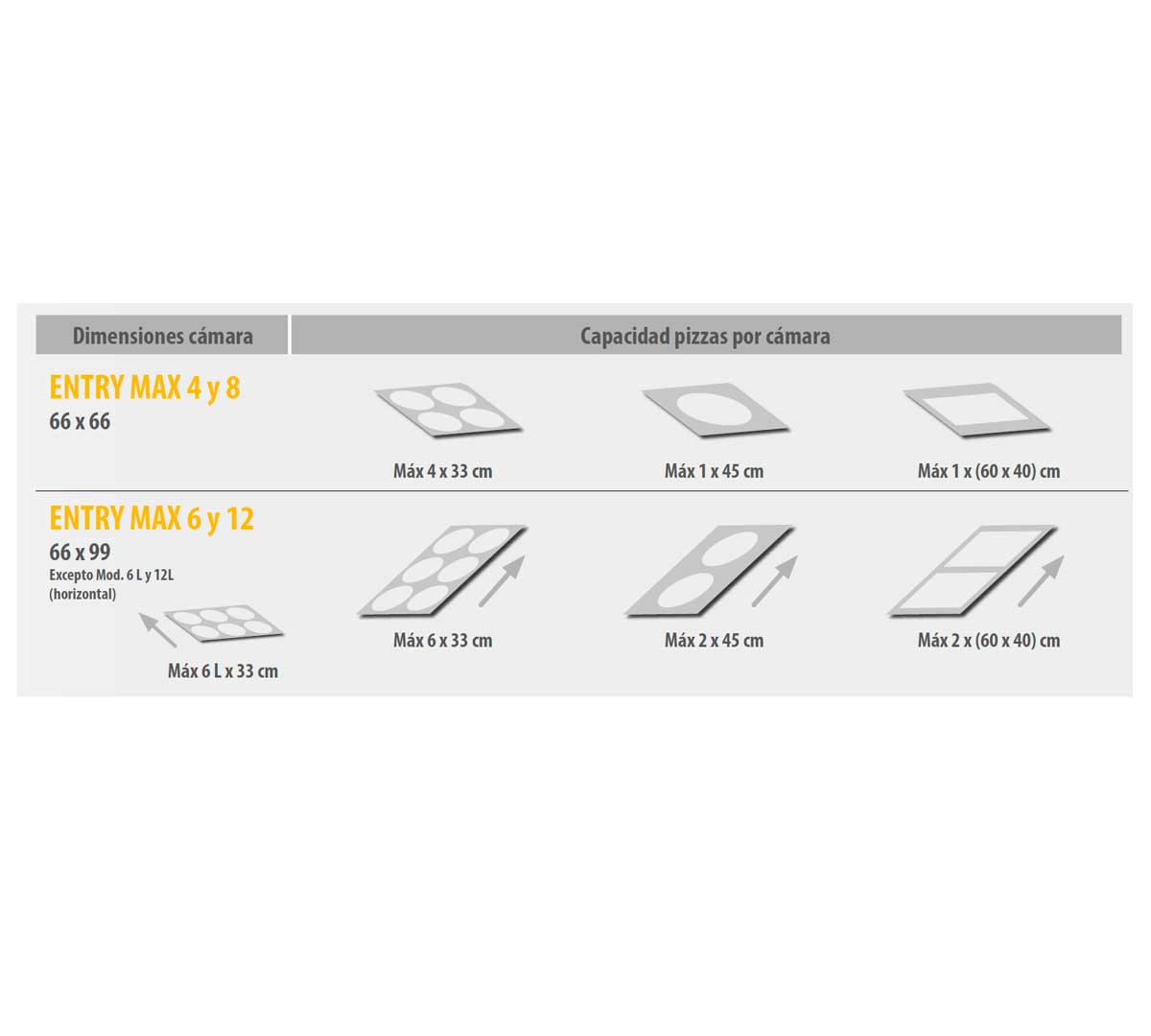 | Capacidad | 12 | Pizzas |