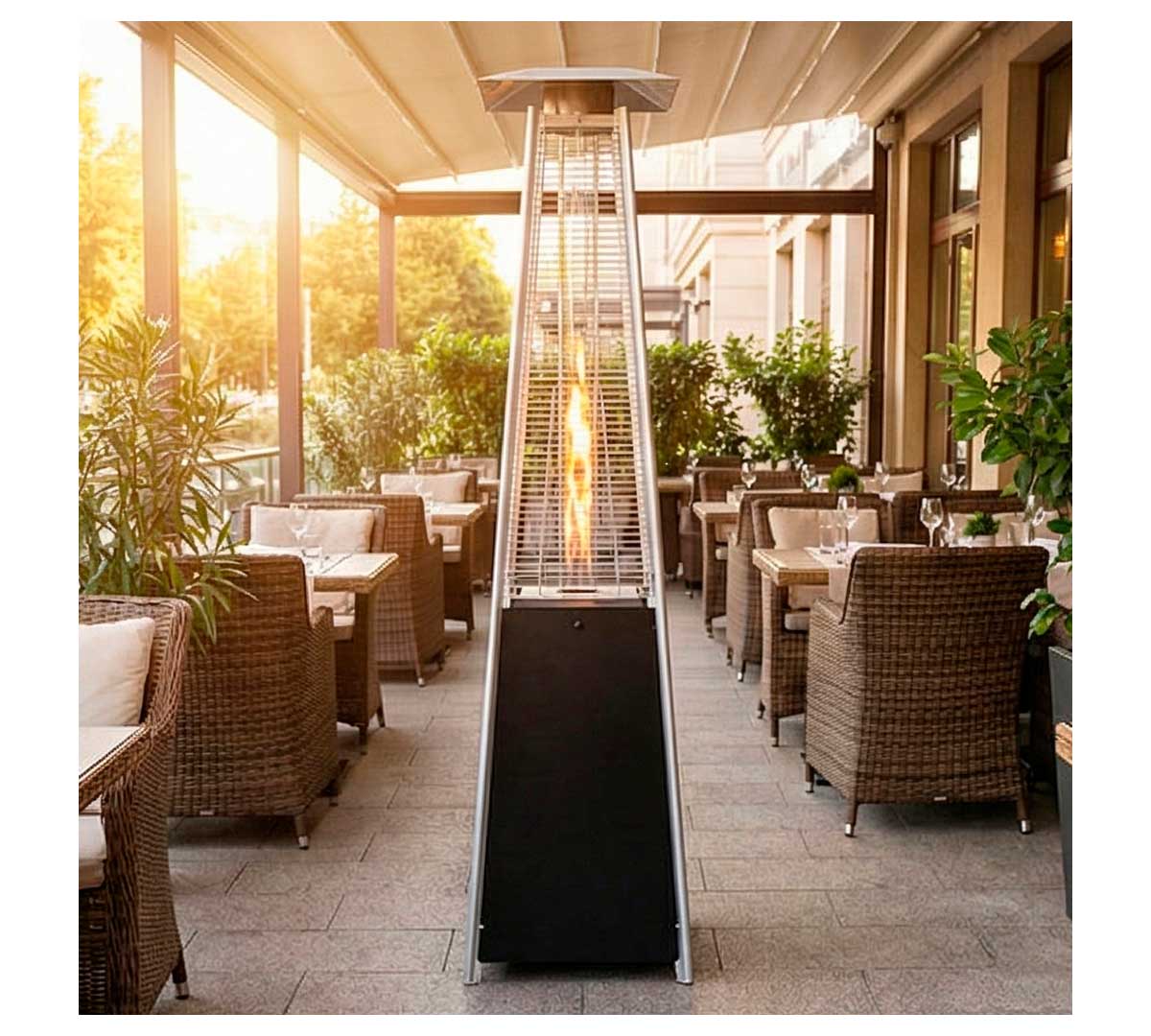 Estufa a gas para exterior con llama visible, un valor extra que hace el ambiente mas confortable. Ideal para exteriores: terrazas, lounges, chill outs, áreas de descanso. Apto para gas butano y propano. Con acabado en color negro.