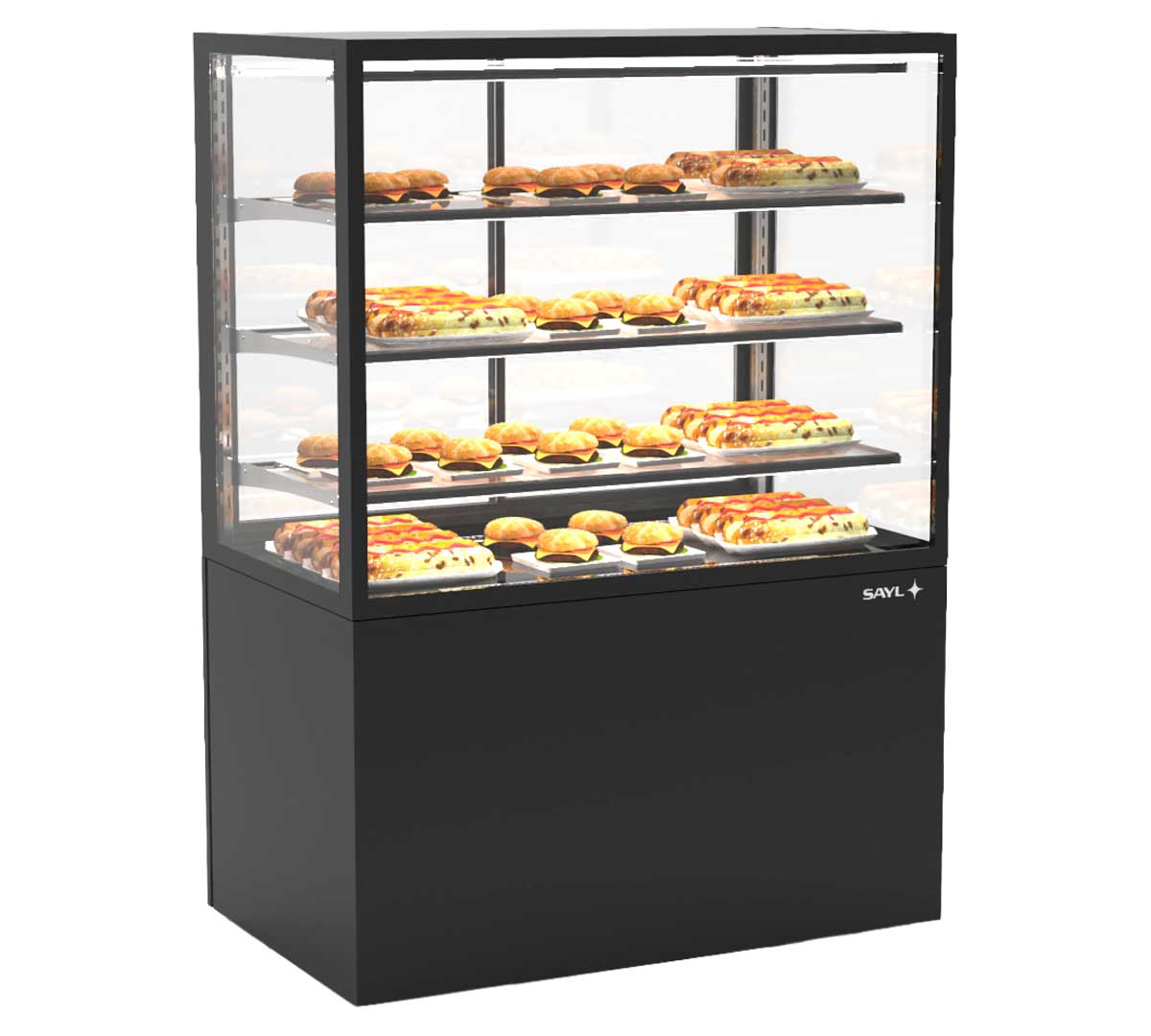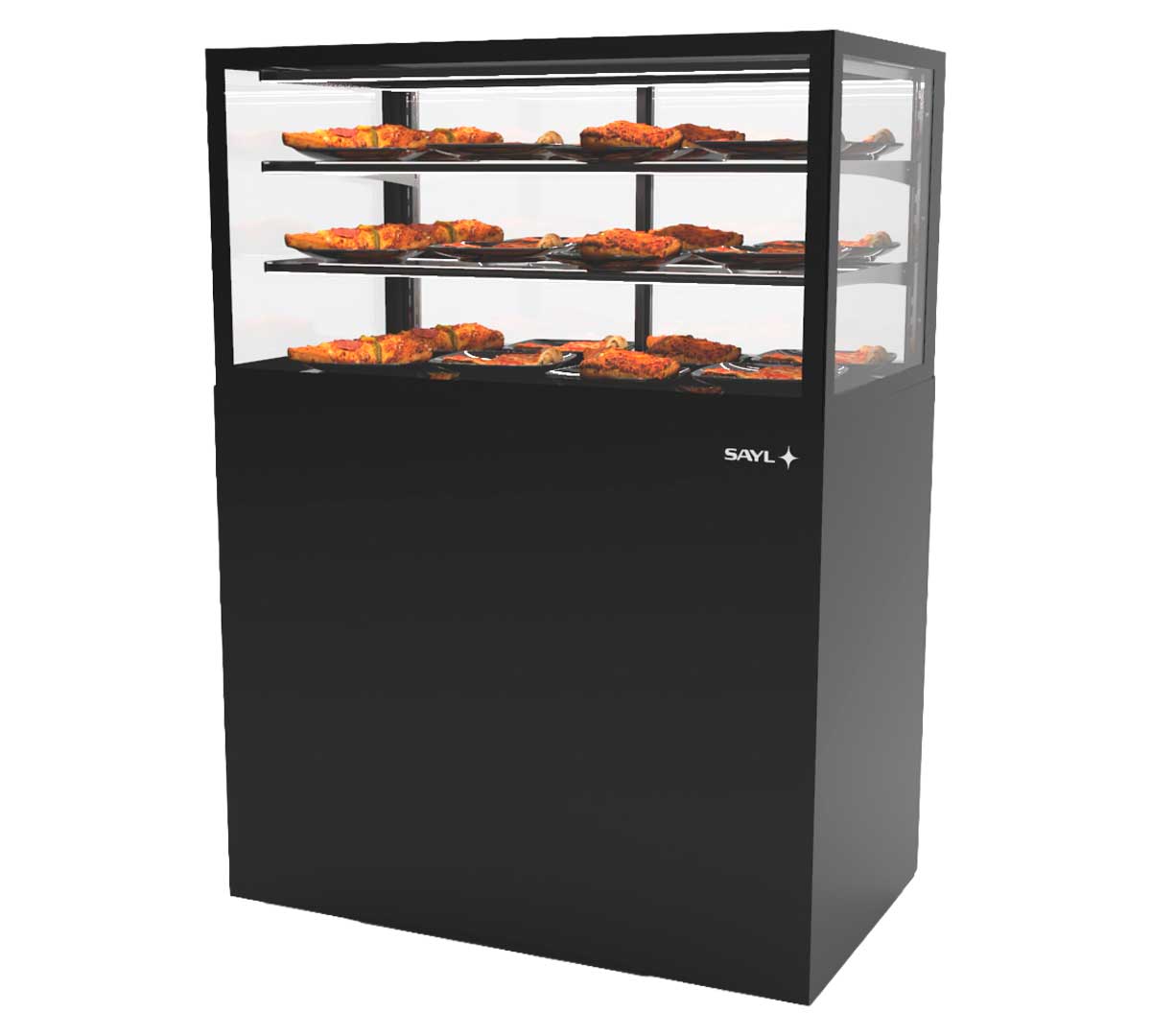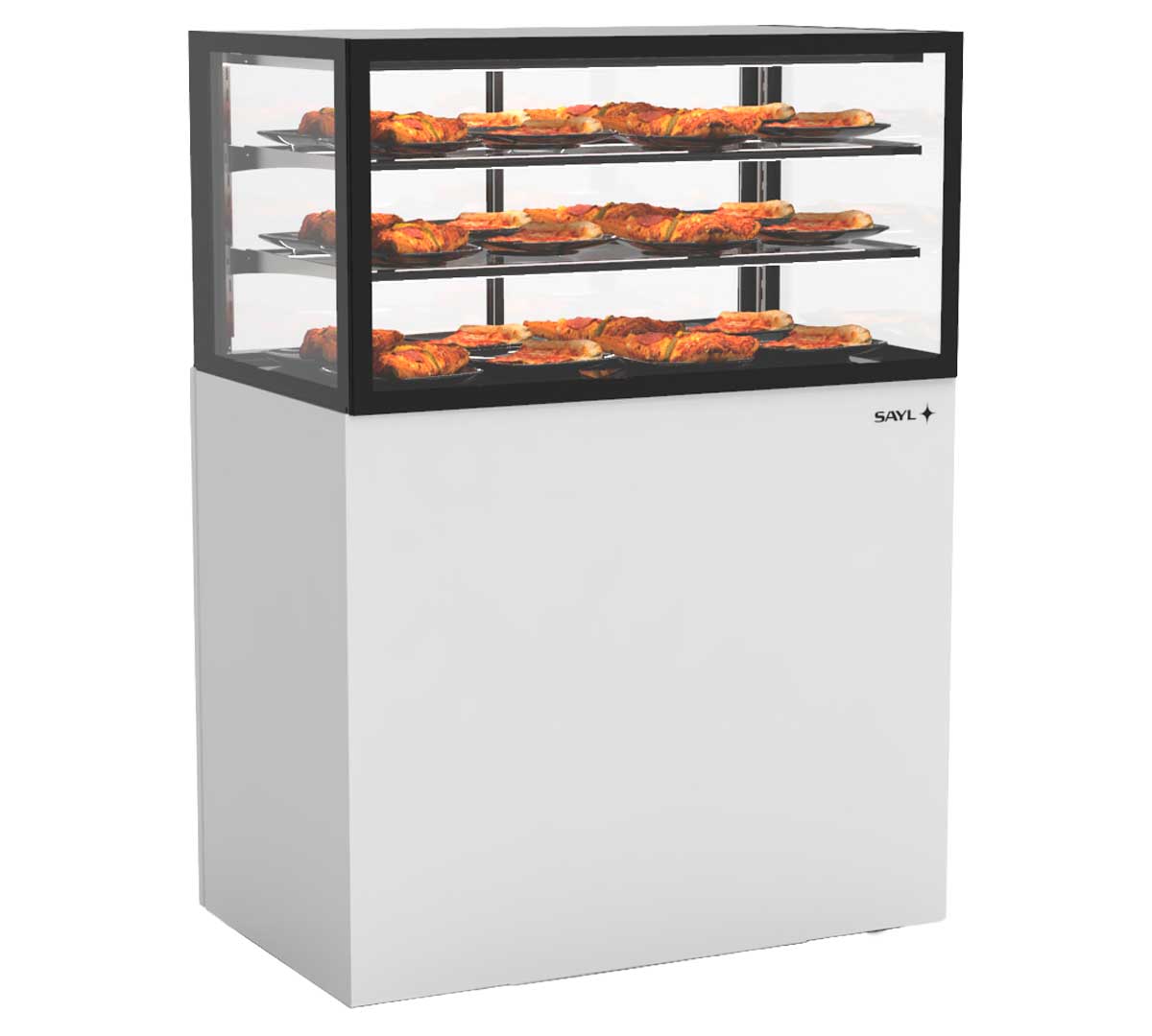 La Vitrina Expositora Integra con Base 100 Sahara de Sayl tiene una base de 100 cm de ancho. Es una solución avanzada para la exposición y conservación de productos en negocios de restauración y alimentación.