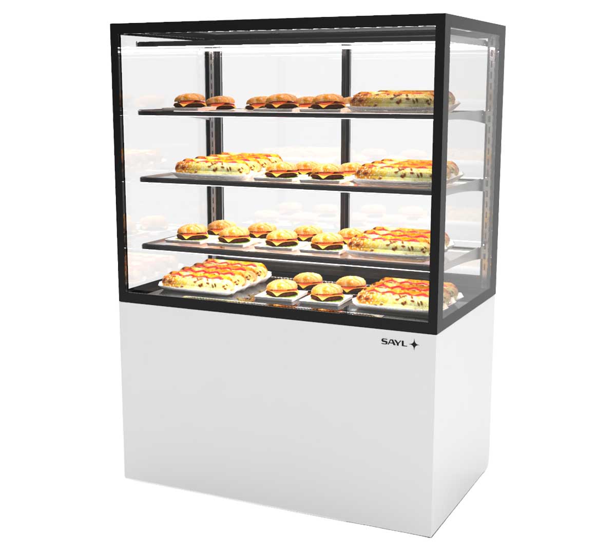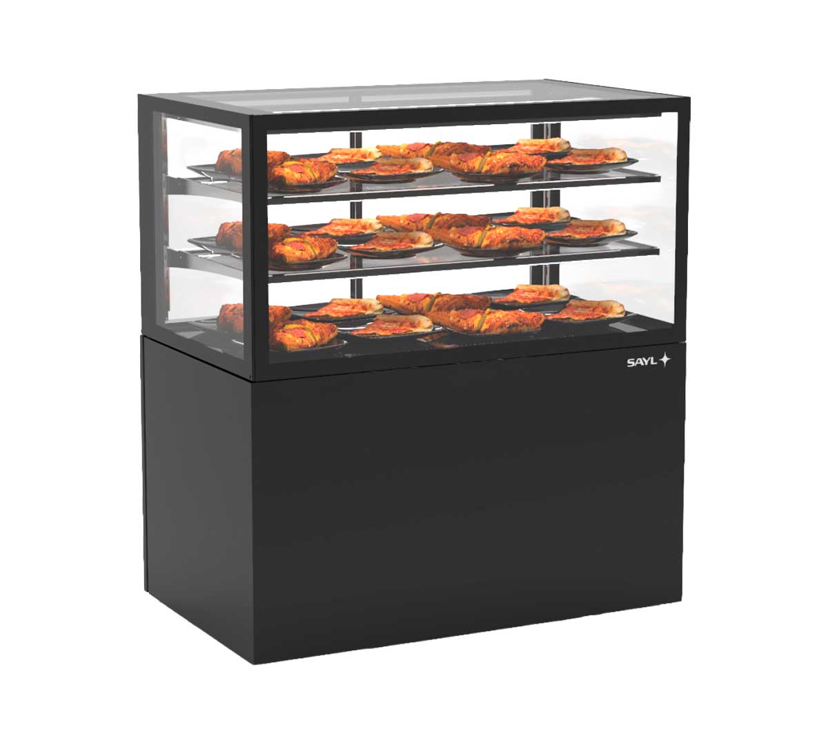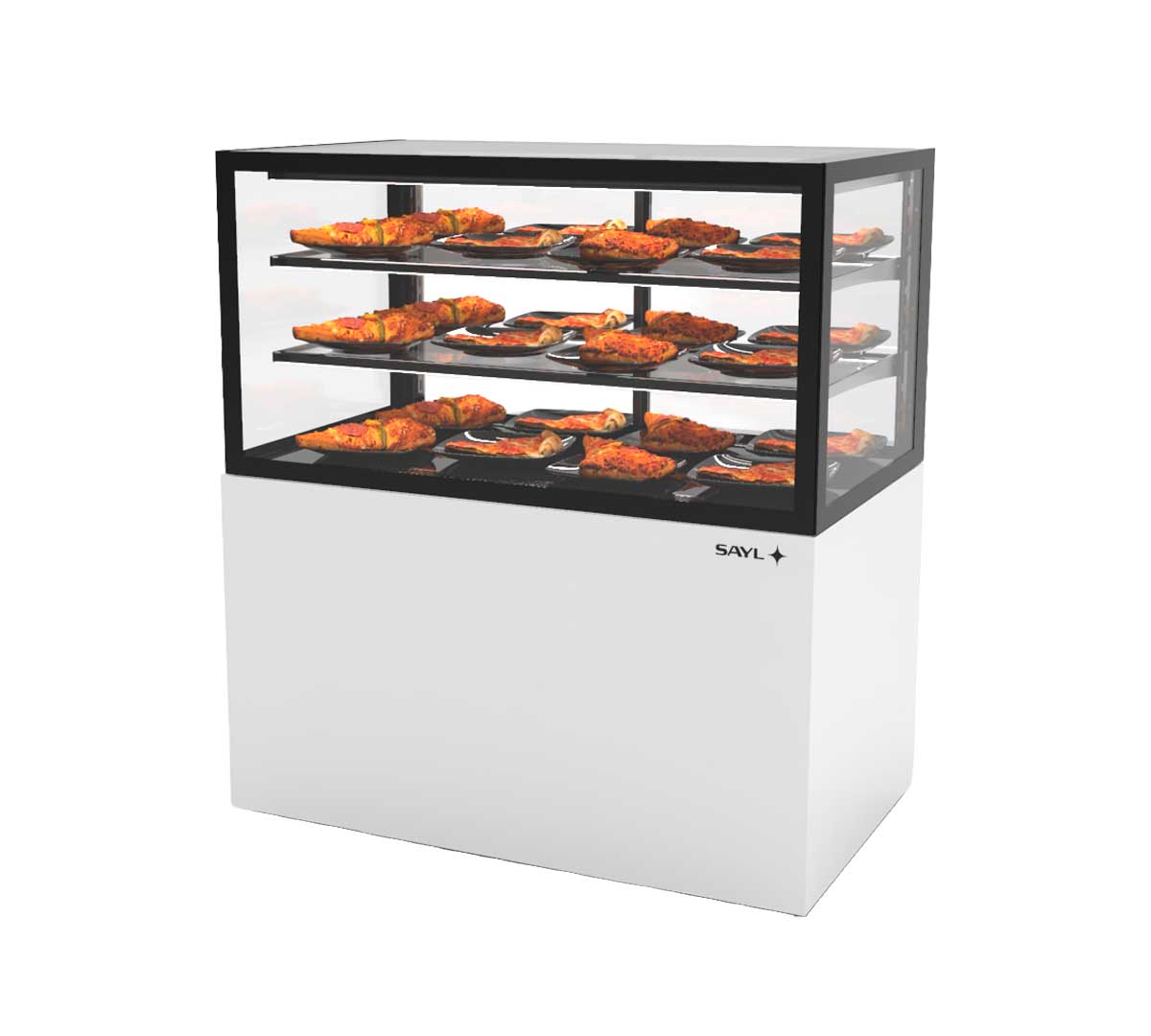 La Vitrina Expositora Integra con Base 100 Sahara de Sayl tiene una base de 100 cm de ancho. Es una solución avanzada para la exposición y conservación de productos en negocios de restauración y alimentación.
