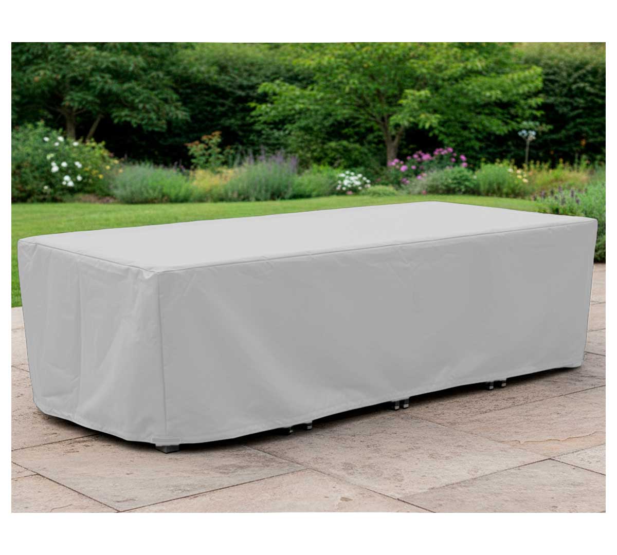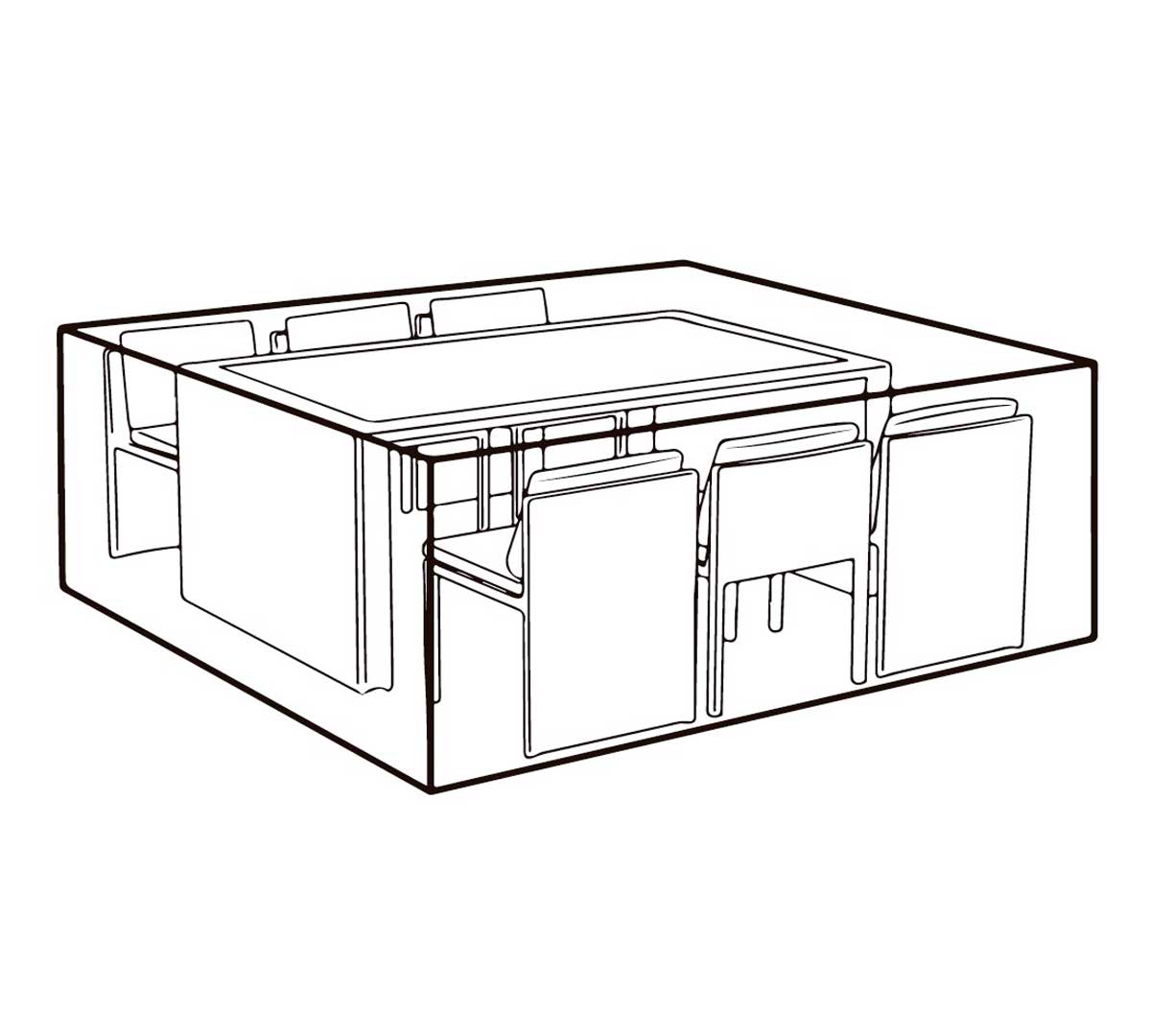 Esta funda está recomendada para proteger conjuntos de mesas rectangulares y sillas en terrazas, jardines, patios y zonas exteriores, tanto en periodos de uso intensivo como durante el almacenamiento fuera de temporada. Es especialmente útil para preservar el mobiliario de la exposición directa al sol, la lluvia y el polvo, prolongando así su vida útil y manteniendo su aspecto original.