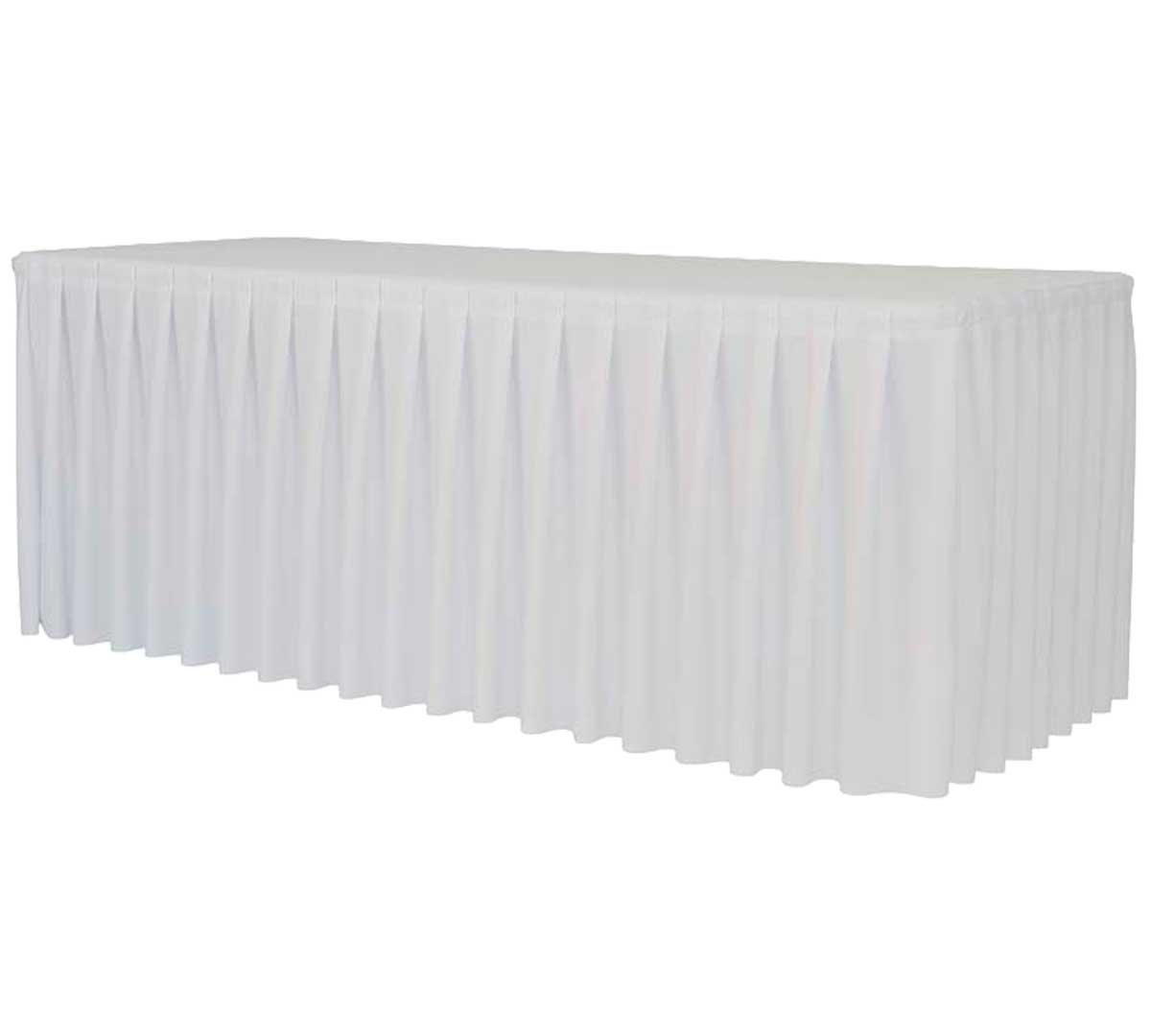 Funda diseñada para mesas plegables rectangulares de 200 x 122 cm en eventos y Hostelería profesional. Su diseño con faldón aporta un acabado elegante y formal, ideal para montajes representativos y uso intensivo.