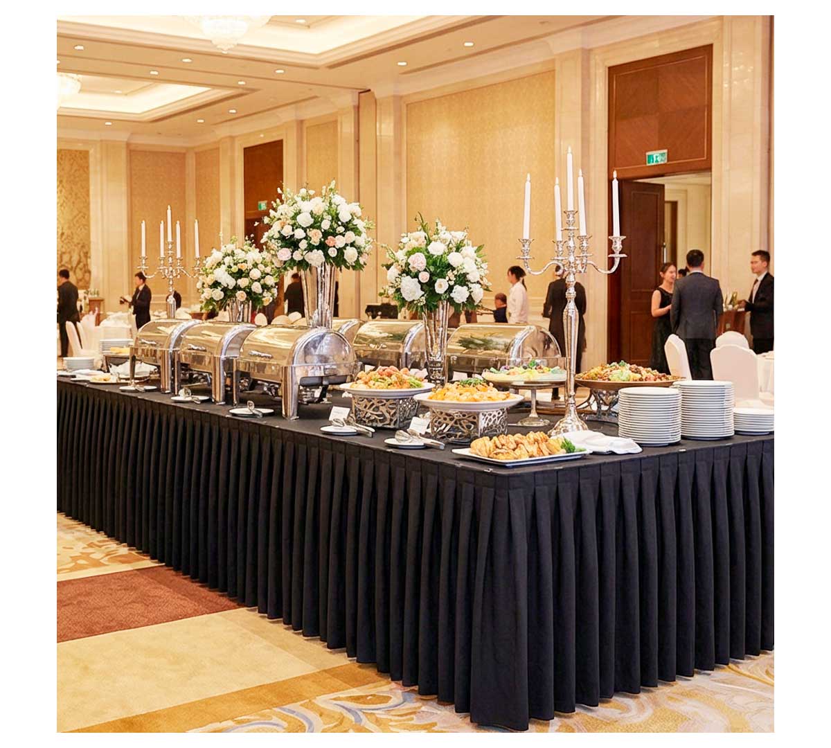 Indicada para empresas de catering, alquiler de mobiliario, hoteles, salones de banquetes, congresos y eventos corporativos donde se requiere una imagen elegante, formal y profesional.